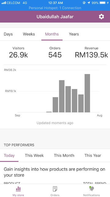 Bukan tu jerr, tiap kali ada order masuk, saya just pantau jer guna Apps.. Boleh install kat Apps store, atau kat Playstore.. Yang best bila sales masuk, notification keluar, dan bunyi kcingg3 sales asyuukkss.. Bestnya.. tengok bawah ni.. Berapa sales dah masuk akan dapat graf macam ni..